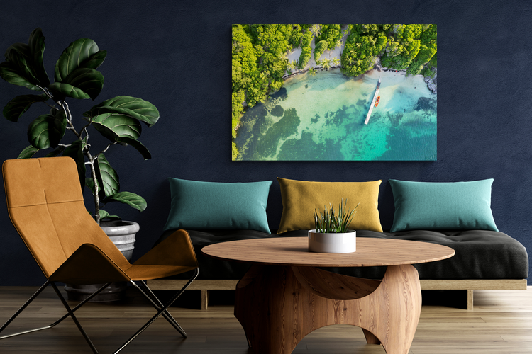 Vu du ciel, l'îlet Chevalier dévoile un paysage de rêve. L'eau turquoise cristalline entoure un ponton solitaire, où est attachée la yole d'un pêcheur. À travers la végétation tropicale luxuriante, une plage de sable blanc se dévoile. Ce tableau paradisiaque, digne des plus belles photos de Martinique invite à l'évasion et à la sérénité.