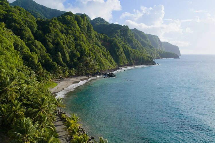 Les majestueuses falaises de Grand’Rivière plongent dans une mer turquoise, révélant l’une des côtes les plus sauvages et préservées de la Martinique. Une scène puissante, authentique, parfaite pour apporter un souffle d’évasion et de nature brute à votre intérieur.
