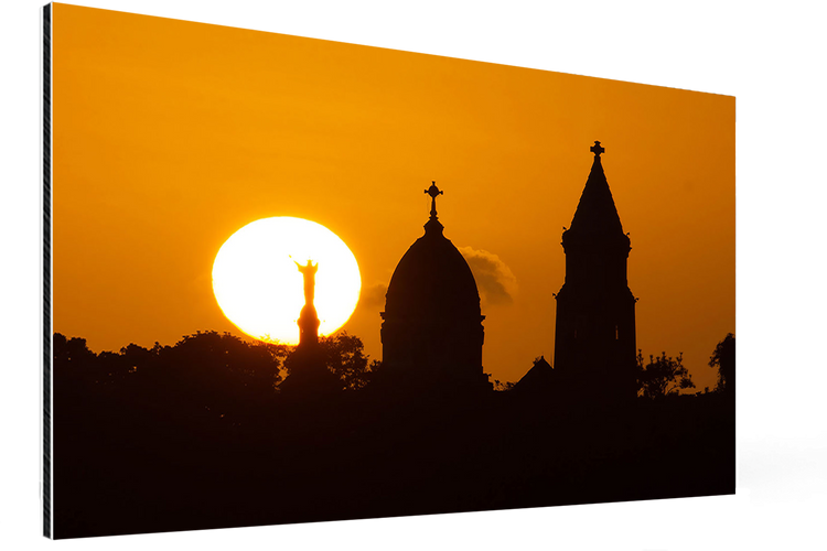 « Instant de grâce au Sacré-Cœur » est un moment unique, où le soleil couchant passe derrière la statue du Christ dans une symphonie de couleur et de symboles.